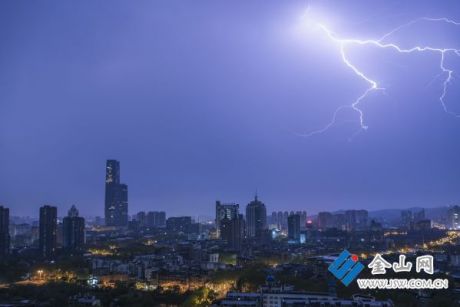 閃電劃破鎮(zhèn)江夜空 強(qiáng)對(duì)流天...